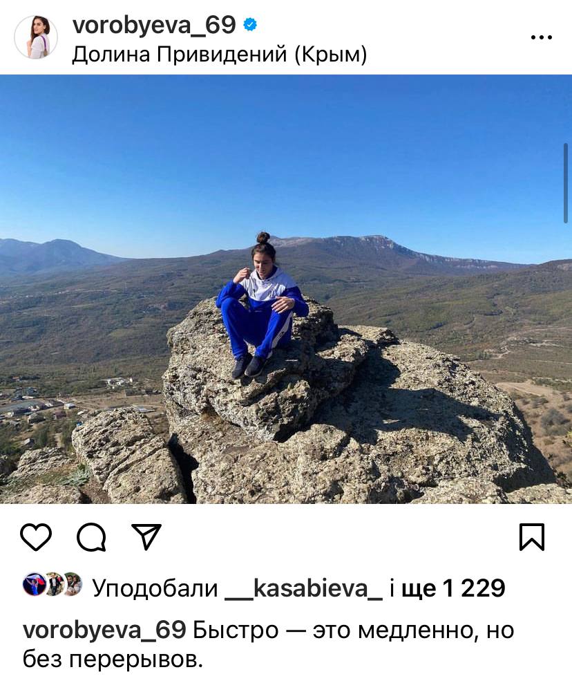 Воробйова – олімпійська чемпіонка 2012 року та срібна призерка Олімпіади 2016-го. 24 лютого 2022 року вона розмістила в себе в Instagram відео на підтримку Путіна та його дій.
