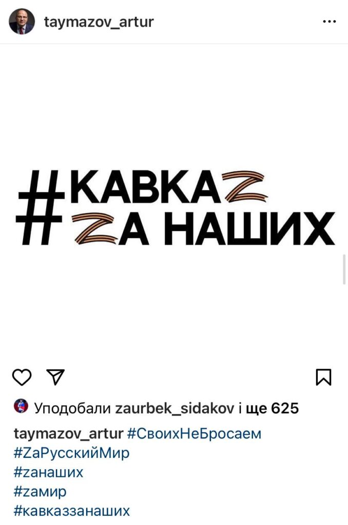 Заурбек Сідаков після 24 лютого 2022 року вподобав відразу 9 постів в Instagram на підтримку Путіна та російської агресії. Муса Євлоєв – 1.