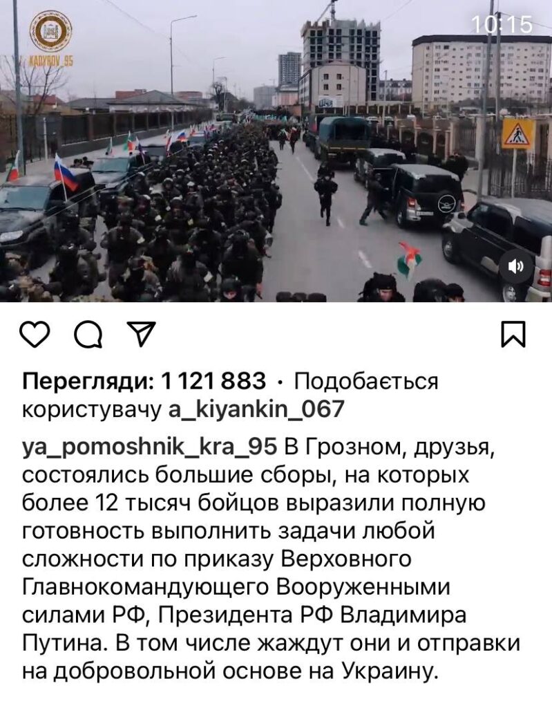 Киянкіну сподобалися пост про “кадирівців”, які готові були їхати воювати в Україну.