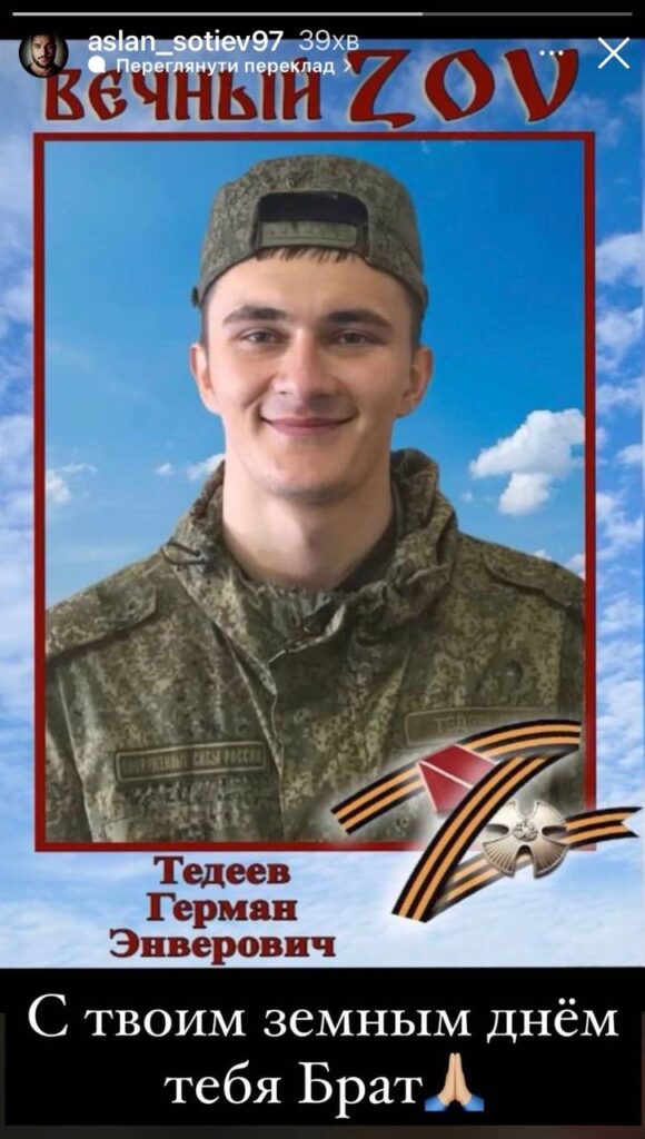 Крім того, Сотієв ще й вшанував пам’ять ліквідованого в Україні окупанти, розмістивши його світлину у своєму Instagram