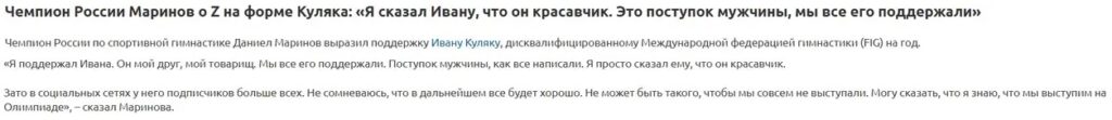 Якщо перед цим у нашому матеріалі йшла мова про “стару гвардію” російської чоловічої гімнастики, то зараз ми розповімо як війну підтримує вже нове покоління російських гімнастів.