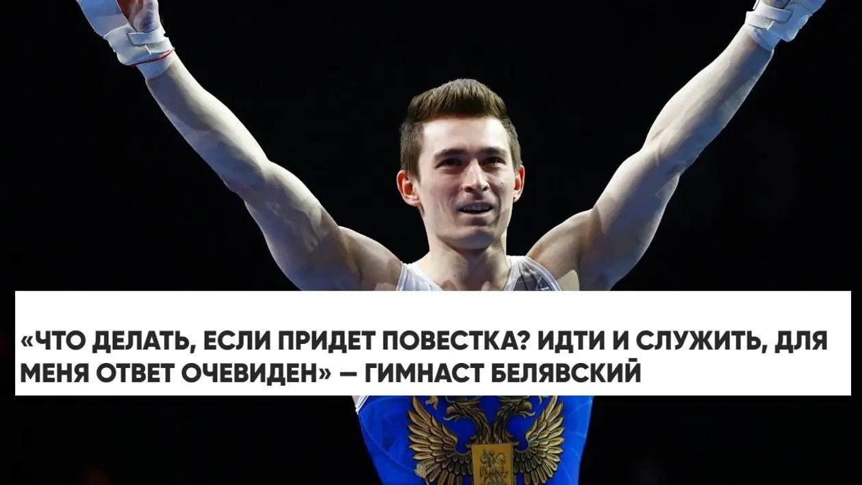 Чемпіон Європейських Ігор-2019 у багатоборстві, триразовий призер Олімпіад та володар чотирьох нагород світових першостей Бєлявський у вересні 2022 року, після початку мобілізації в РФ, в інтерв’ю російському пропагандистському ресурсу «Матч ТВ» заявив, що готовий покинути гімнастику та піти воювати проти України, якщо отримає повістку.