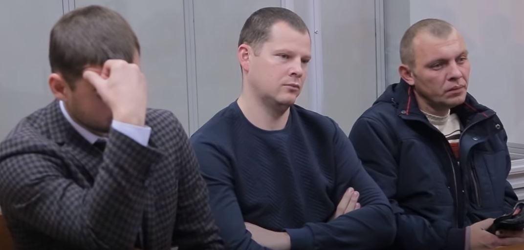 Потерпілий (ліворуч) та засуджені на одному із засідань у Шевченківському суді Києва/архівне фото Watchers
