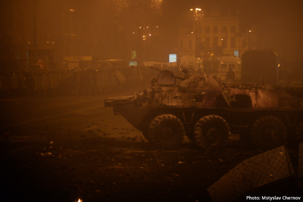 Як писала «Адвокатська дорадча група», яка виступає представниками потерпілих у справах Майдану, ввечері 18-го лютого 2014-го співробітники «Беркуту» та внутрішніх військ, за наказом тодішнього керівництва МВС, почали штурмували наметове містечко на Майдані Незалежності та Будинок Профспілок аби придушити протести.