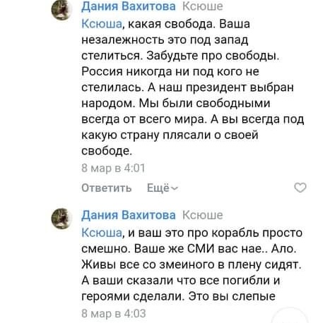 Скріншот з текстового інтерв’ю окупанта