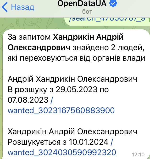 Вже 10 січня 2024 року, згідно до даних з аналітичної бази opendata, його оголосили у розшук.