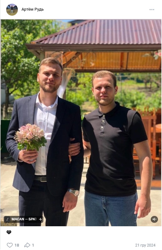 Також на сторінці Артьома Рудя у Вконтакте (скоріше за все – брата Алєксандра) 21-го грудня 2024-го року з’явилася спільна світлина з каратистом.