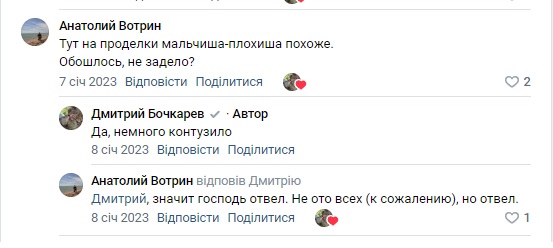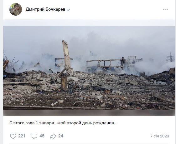 Сам Бочкарьов на своїй сторінці в соцмережі Вконтакте написав, що він тоді отримав легку контузію, а також вважає 1 січня 2023 року своїм другим днем народження.