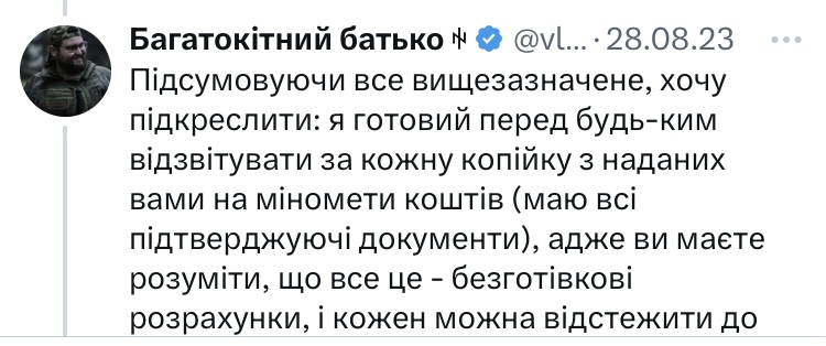 12-го серпня 2023-го року Сорд написав, що гроші безслідно не зникнуть.