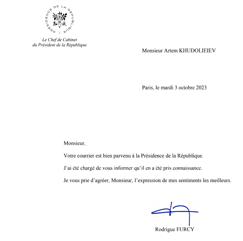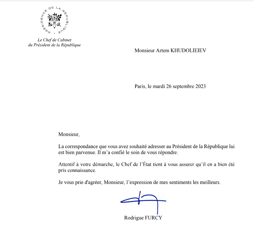 У відповіді йшлося, що лист був отриманий адміністрацією Макрона і інформація, наведена у ньому, взята до відома. Чи було це лише бюрократичною відпискою, чи дійсно влада Франції зробить все можливе, щоб не зганьбити себе організацією Олімпійських Ігор за участі прихильників геноциду – покаже лише час.