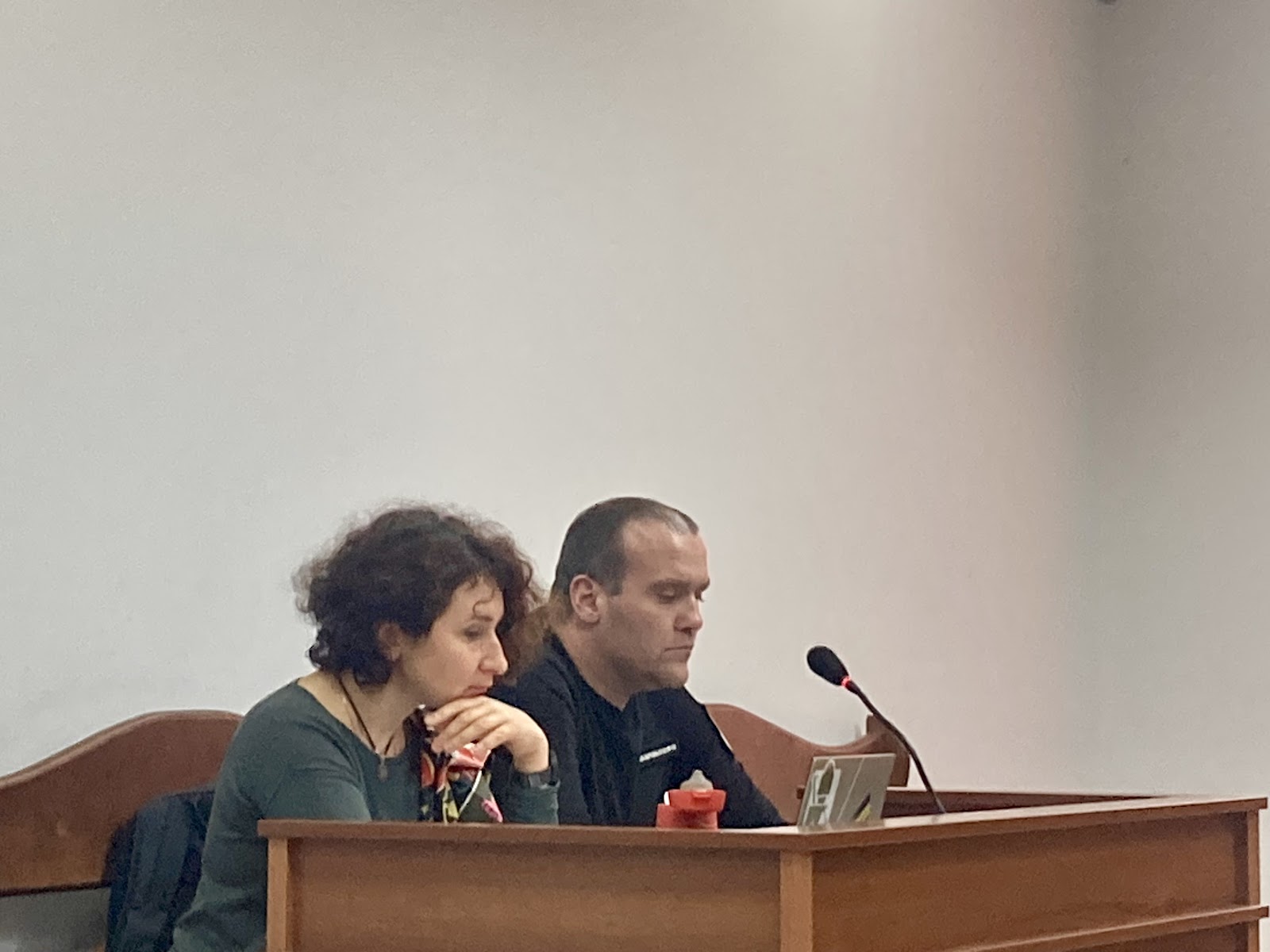 Оксана Михалевич (ліворуч) та прокурор Костянтин Котляренко (праворуч)/фото: Аліна Кондратенко