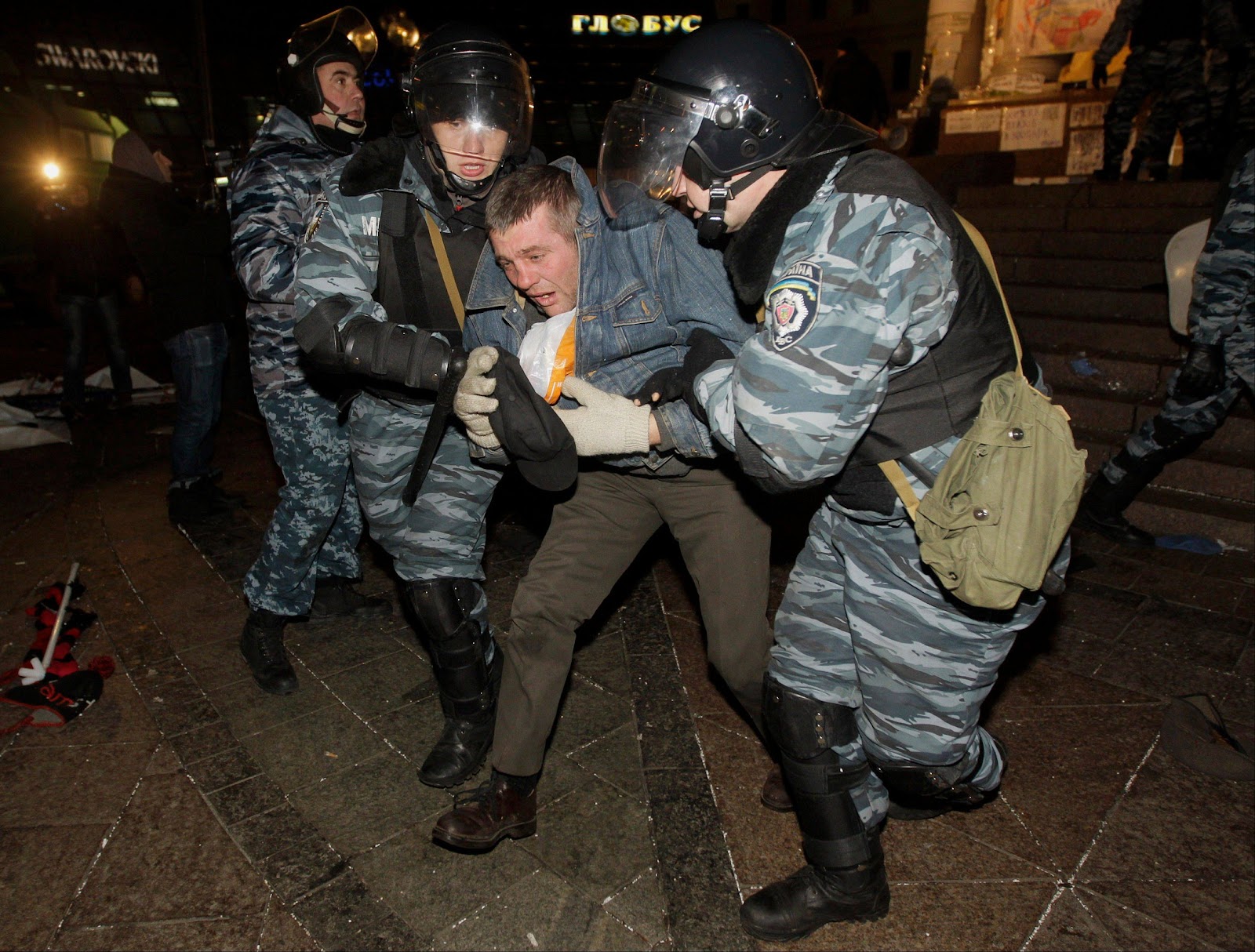 Беркутівці тягнуть затриманого майданівця/фото: AP