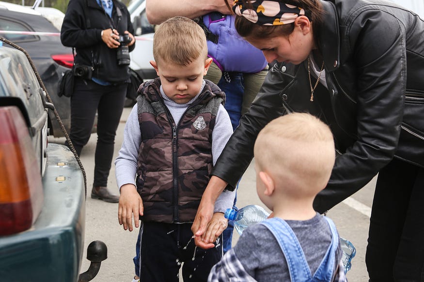 До пункту прийому внутрішньо переміщених осіб прибувають в основному жінки, діти та літні люди. Чоловіки або не наважуються їхати, або їх просто не випускають. Проте деяким все ж вдається виїхати.