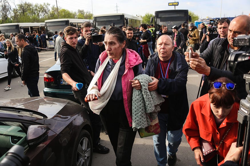 Першого травня почалась евакуація цивільного населення з заводу “Азовсталь”. З бомбосховищ заводу вдалося вивезти 156 людей. Зелений коридор координувала Організація об’єднаних націй.