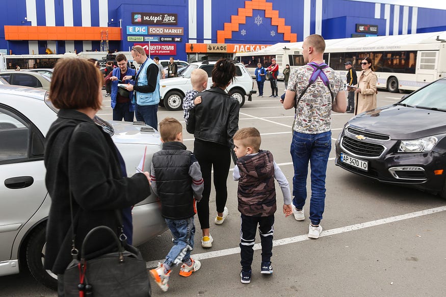 Другого травня, коли всі очікували колону з заводу, до пункта прийому тимчасово переміщених осіб за день прибуло близько 700 людей. Всі вони їхали самі, на власних або підібраних десь авто. Багато хто гуртувався з незнайомими людьми, щоб їхати разом.