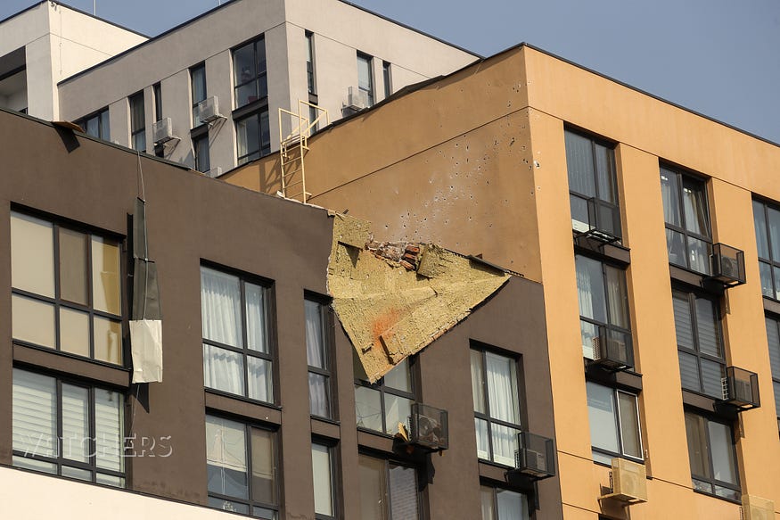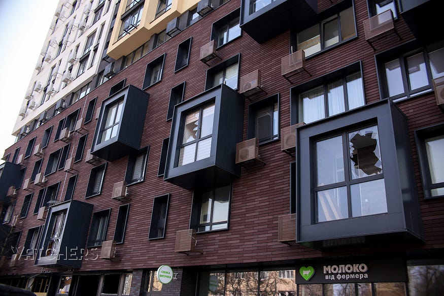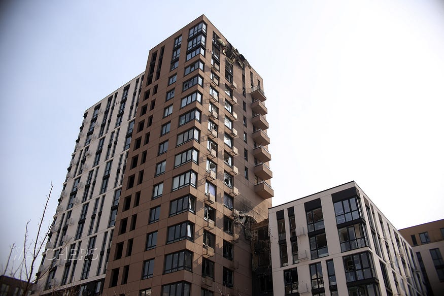 Черговий житловий комплекс Києва був пошкоджений внаслідок обстрілу окупантами. Пошкоджені будинки на великій території, є поранені.