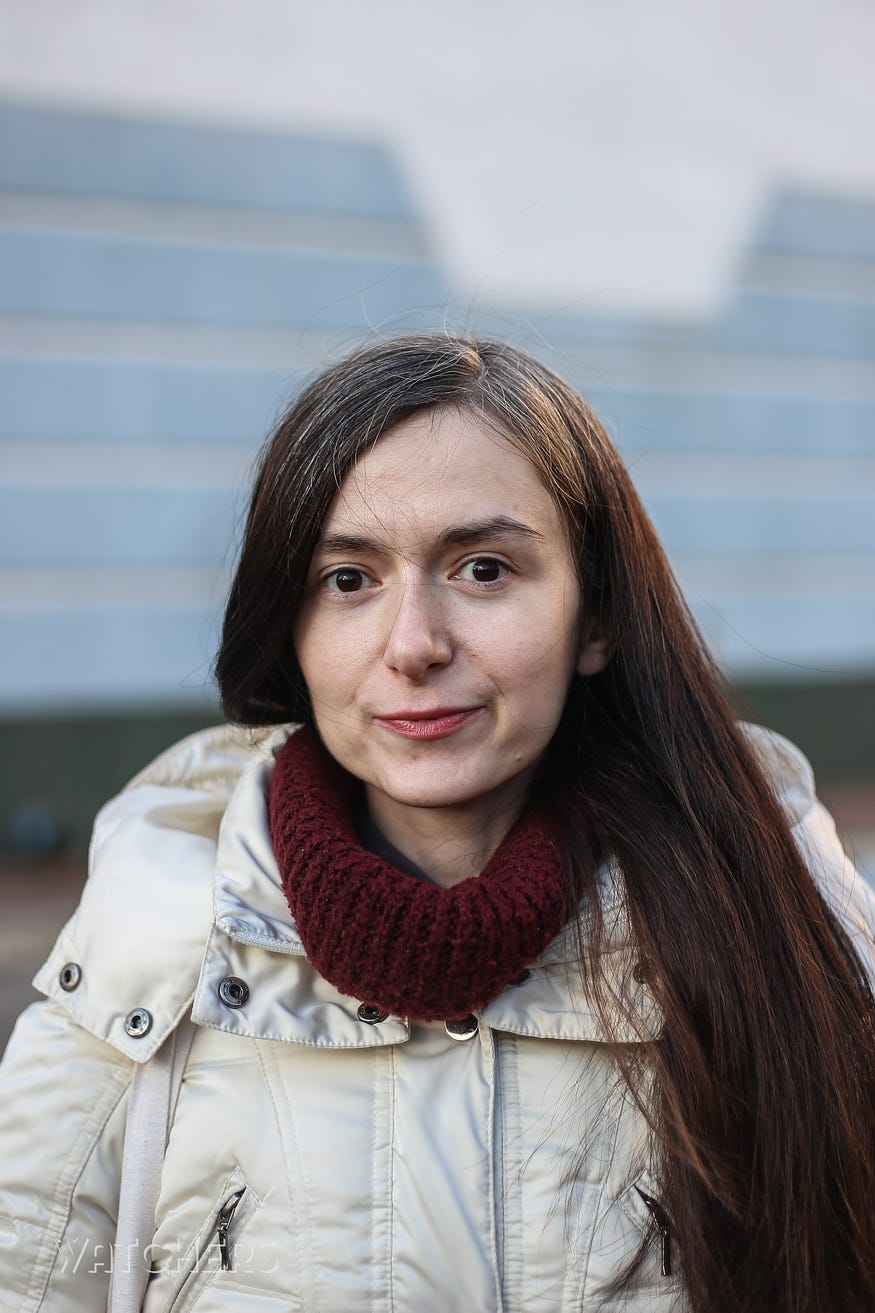 «На даний момент я хочу проявити максимально активну позицію, допомогти тим, чим можу. Я не планую тікати у разі бойових дій. Відповідно, я прийшла у військкомат дізнатися, які можливості є в територіальній обороні, умови підписання контракту. Знайшла багато плюсів в територіальній обороні — навчання щосуботи, все добре організовано, приймають практично всіх», — Олена, 31 рік.