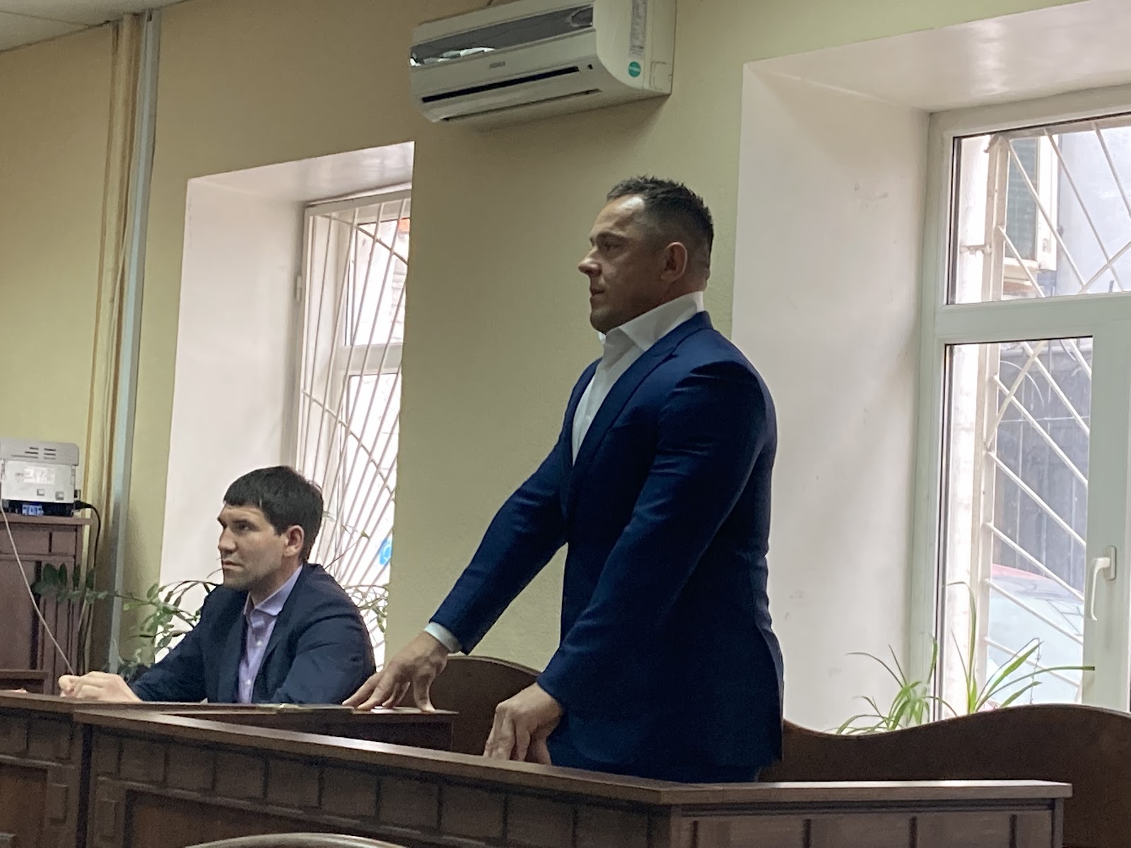 Потерпілий у справі розгону протесту у гостинному дворі – Михайло Ковальчук (праворуч) у Подільському райсуді Києва 30-го вересня