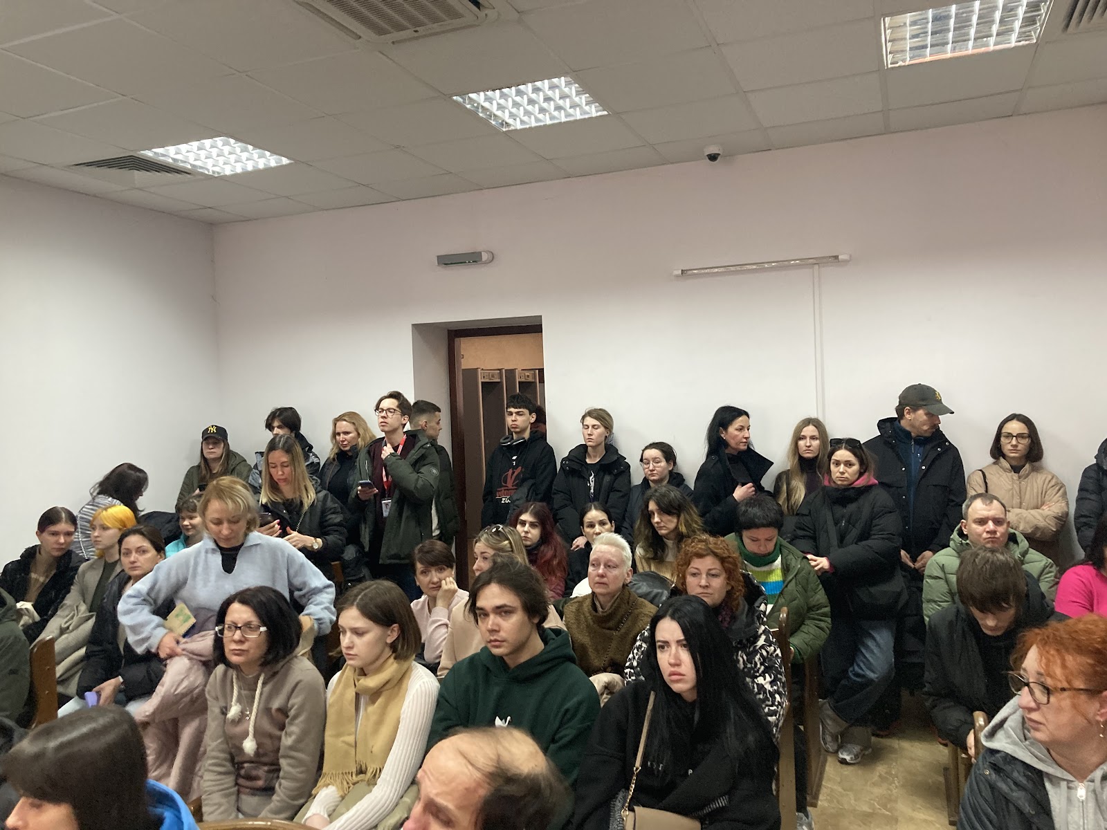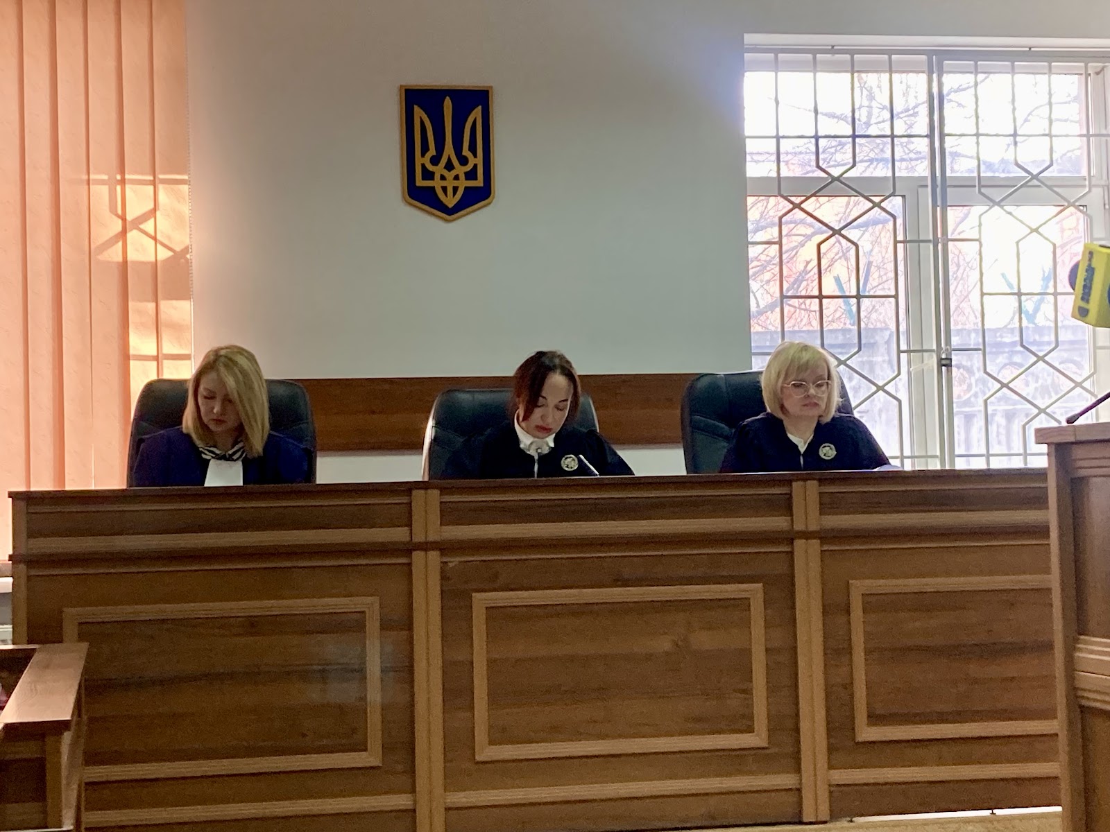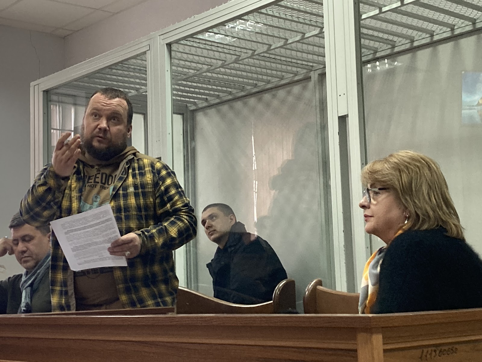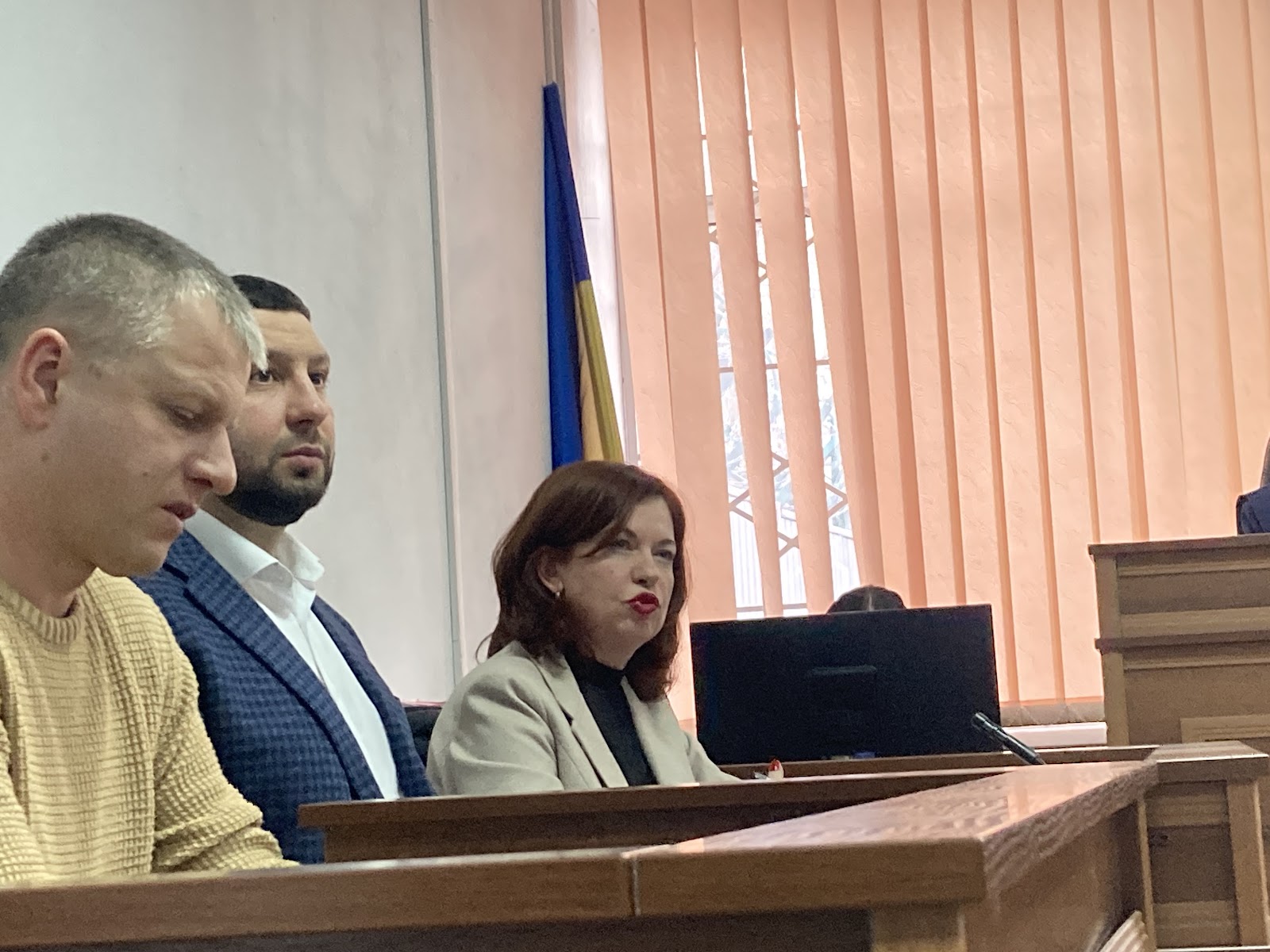 Батько Максима Матерухіна Олександр (ліворуч), представник родини потерпілих Олександр Панченко та прокурорка Олена Васильєва (праворуч) в суді 4 березня/фото: Аліна Кондратенко, Watchers