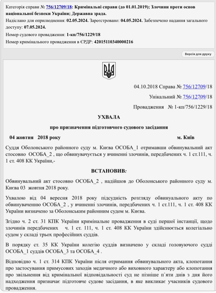 Примітно, що в єдиному реєстрі судових рішень станом 30 квітня 2024 року не було жодного рішення Оболонського суду у цій справі. А також не було ані тексту вироку, ані рішення апеляції Києва про повернення справи на новий розгляд.