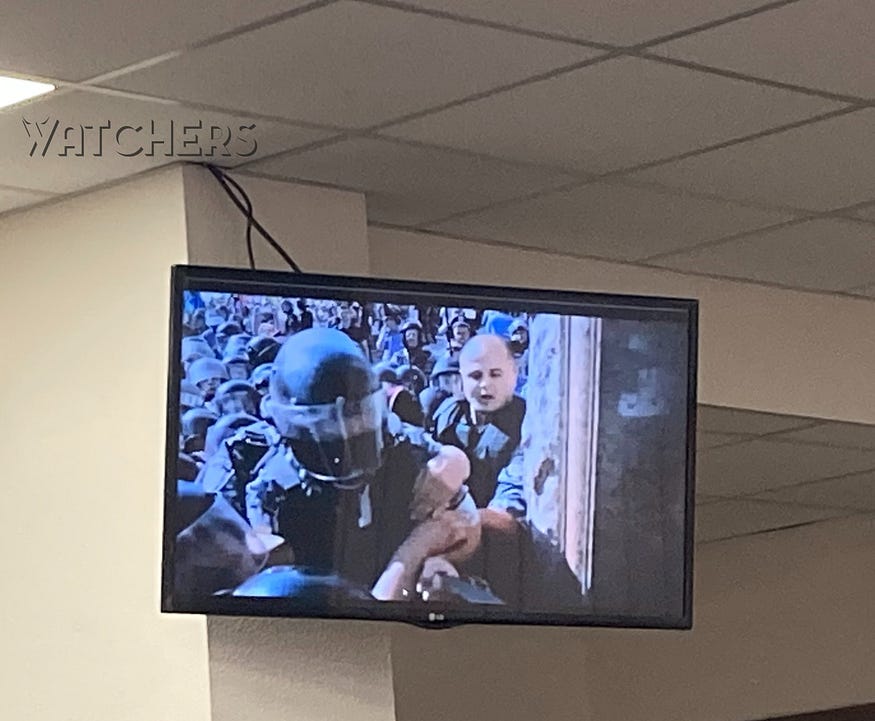 За словами прокурора Олексія Клименка, група міліціонерів тоді витісняла групу нардепів від будівлі Київради. На стопкадрі сутички видно обличчя обвинуваченого Логвиненка (одягнутий не по формі). Захист Логвиненка заявив, що відео начебто змонтоване.