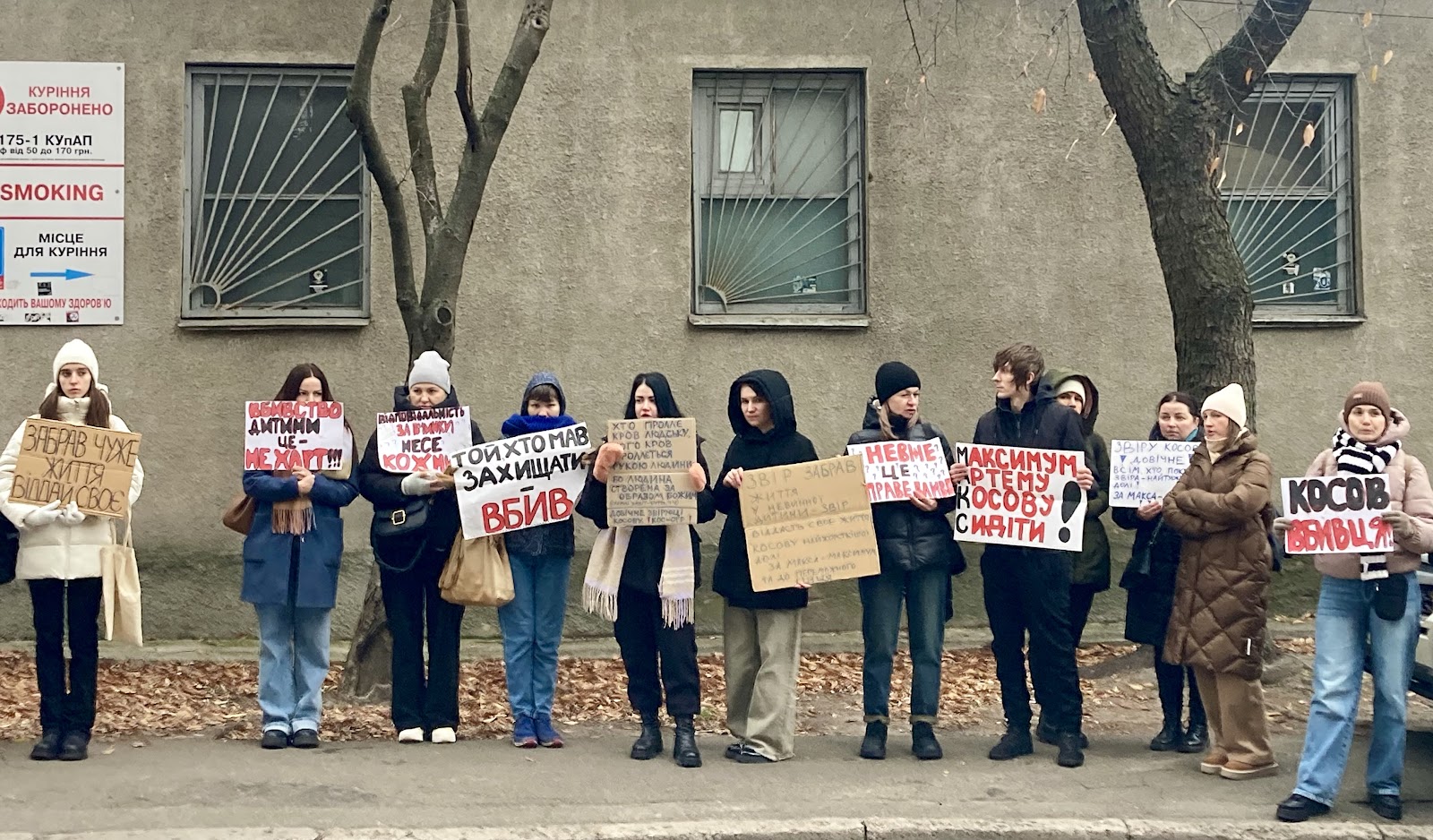Об 11 ранку у середу, 4 грудня, на судове засідання прийшли небайдужі, аби підтримати родину загиблого Максима Матерухіна. Традиційно перед слуханням та після нього вони стояли з плакатами біля будівлі суду. Вони впевнені: увага громадськості важлива.