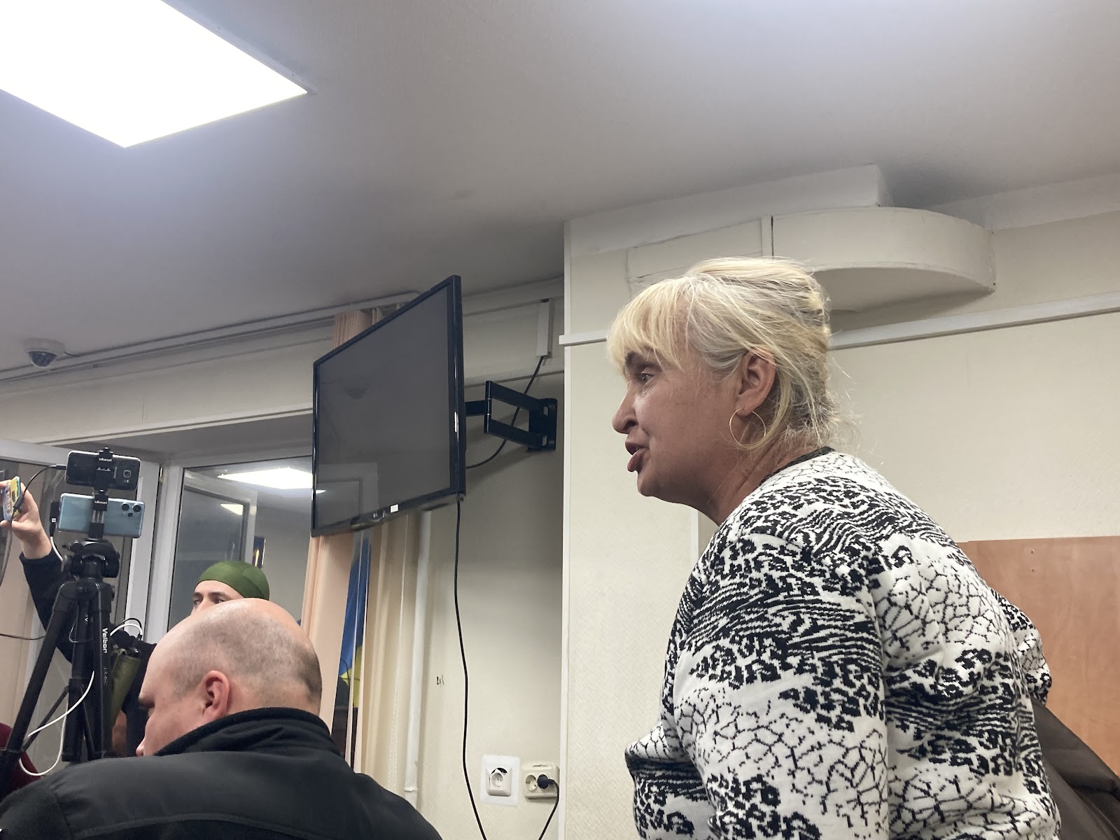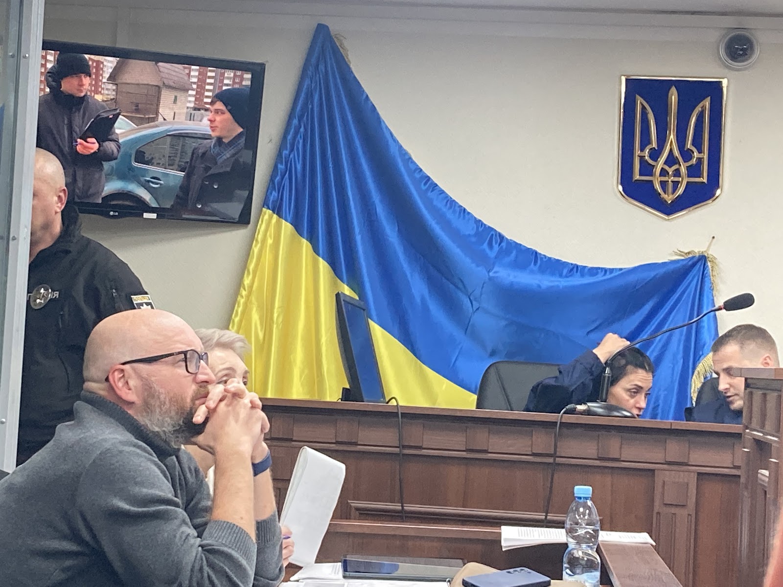 Голосіївський райсуд Києва 30-го жовтня 2023-го року дивиться відео слідчого експерименту. Фото: Аліна Кондратенко