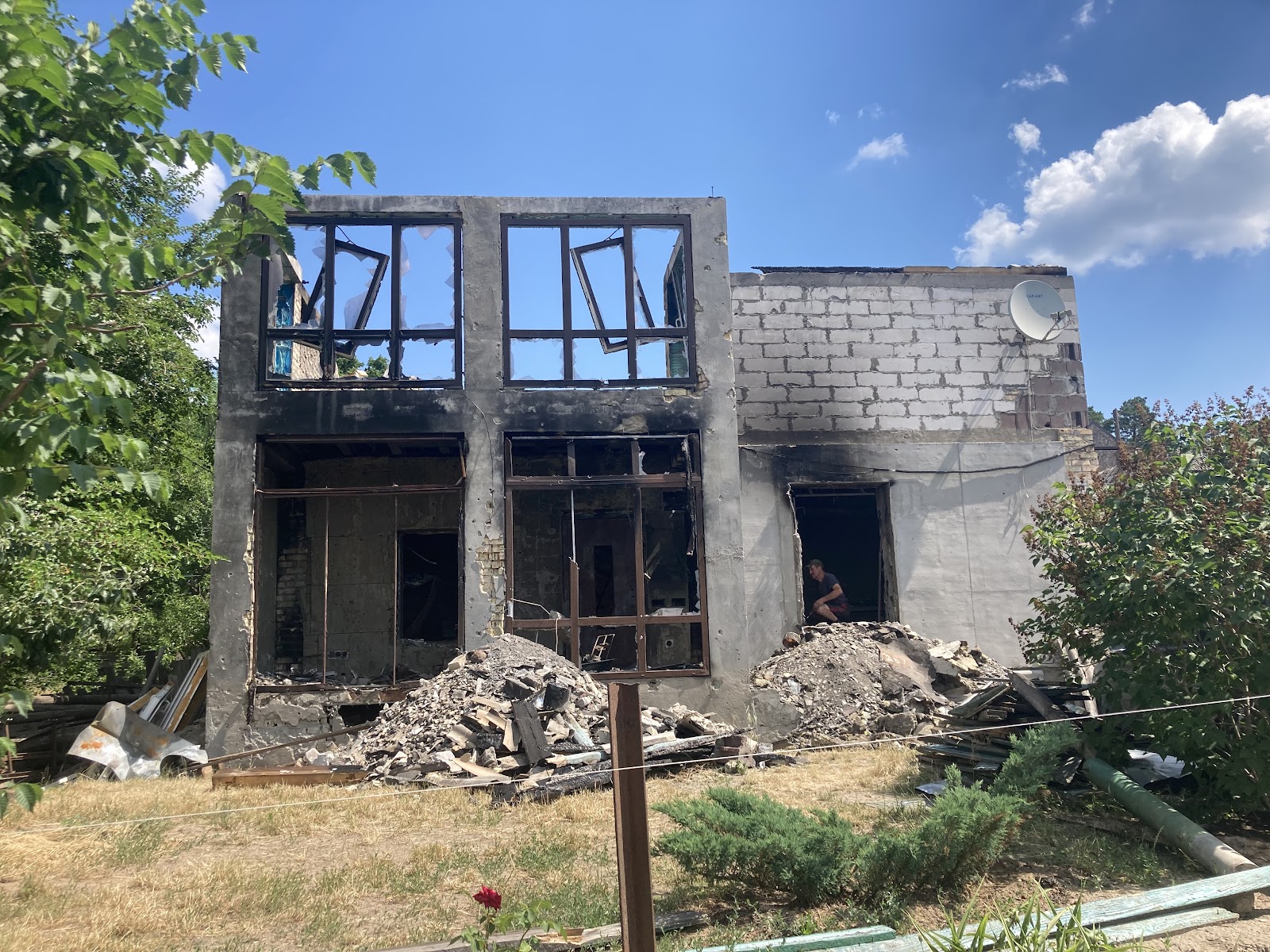 Волонтер Дмитро, який займається гуманітарною допомогою – також місцевий. Розповідає, що вкладався душею та серцем у побудову власного будинку впродовж 10-ти років, втім помешкання не вціліло.