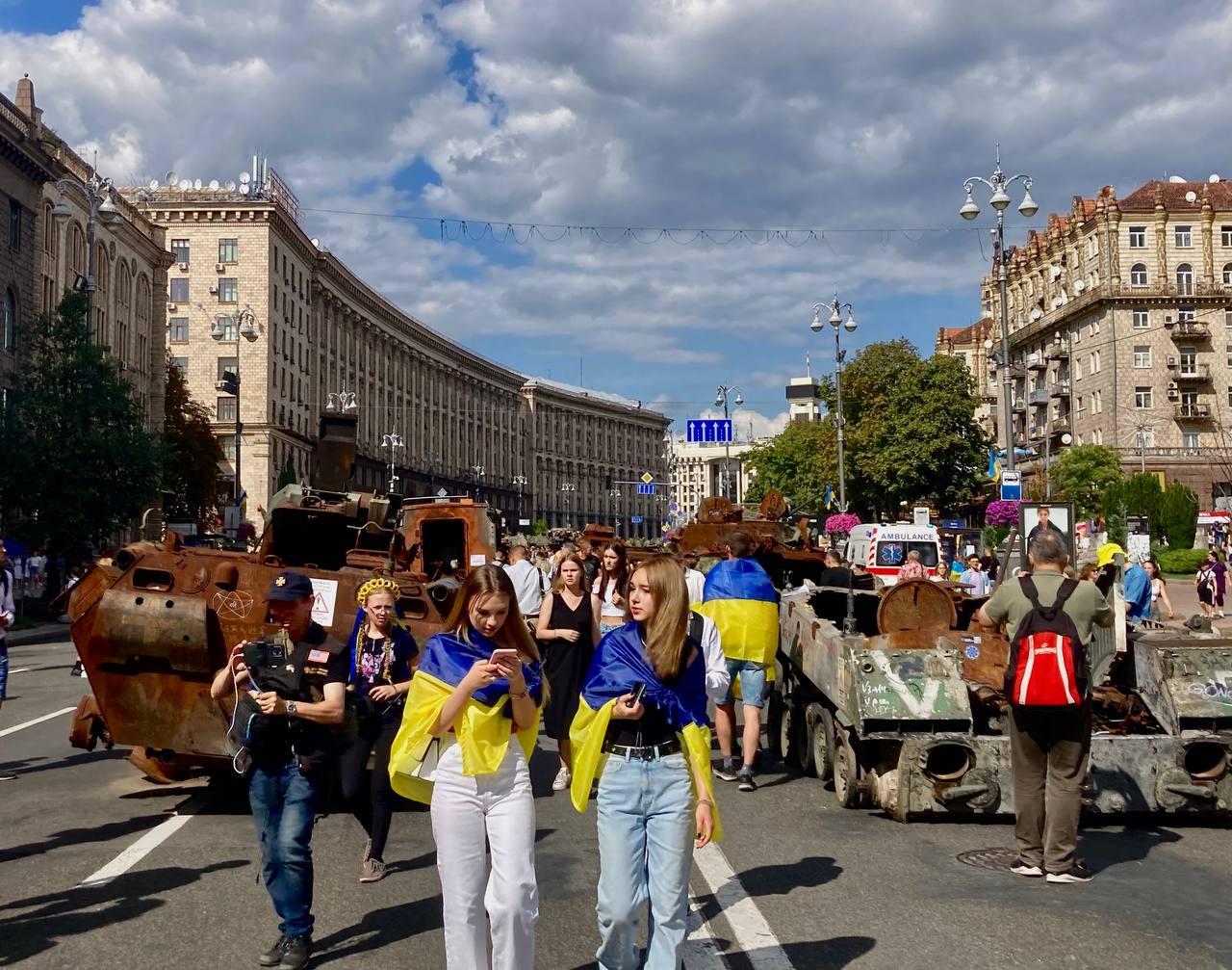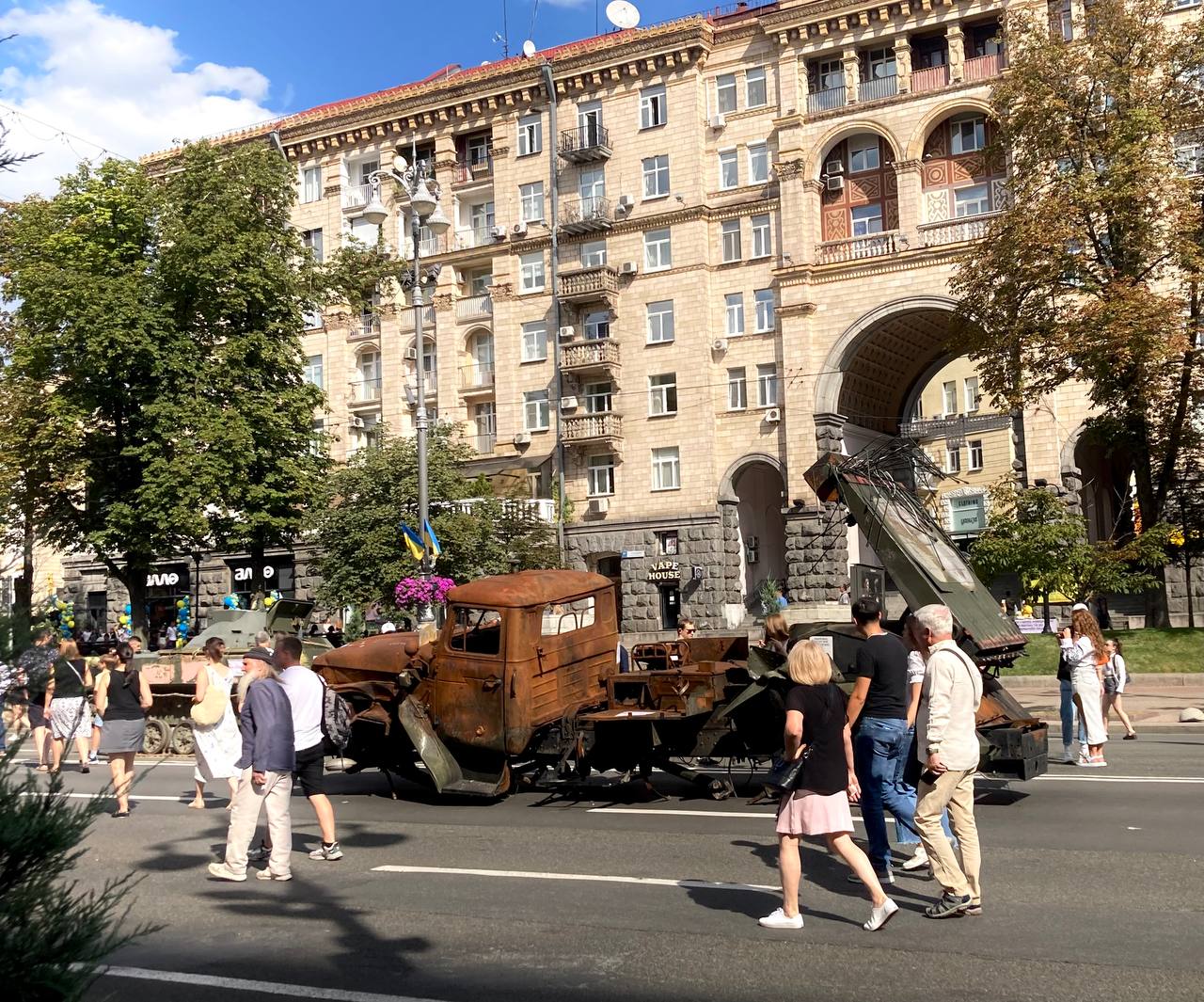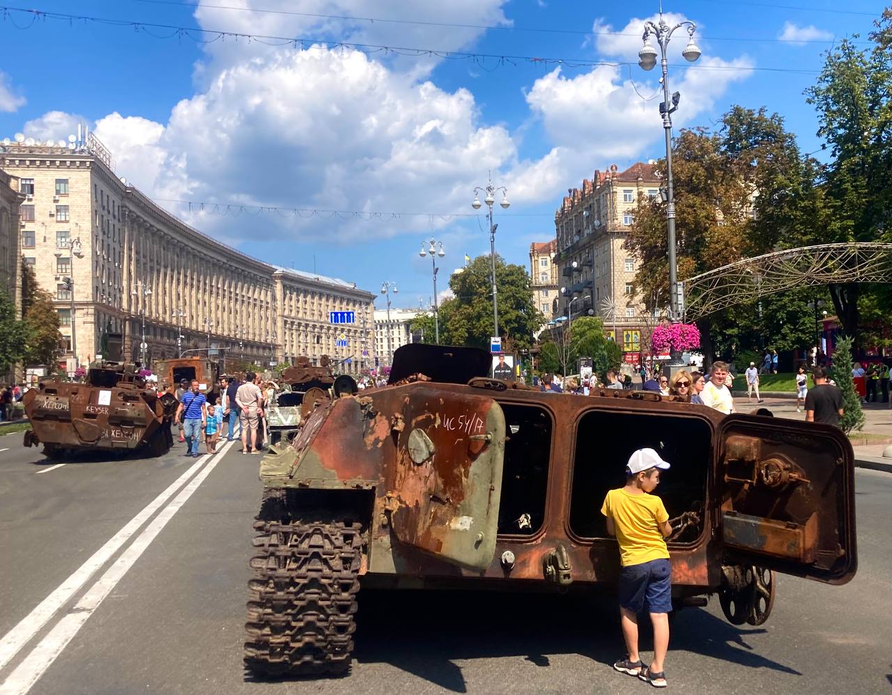 Після початку Великої війни у Києві не проводять традиційних парадів українських захисників з огляду на заходи безпеки та потреу в присутності Сил оборони на лінії зіткнення. Натомість запанувала нова традиція – щороку до дня Незалежності українські військові показують на Хрещатику розбиту техніку окупантів, які планували цю Незалежність відібрати.
