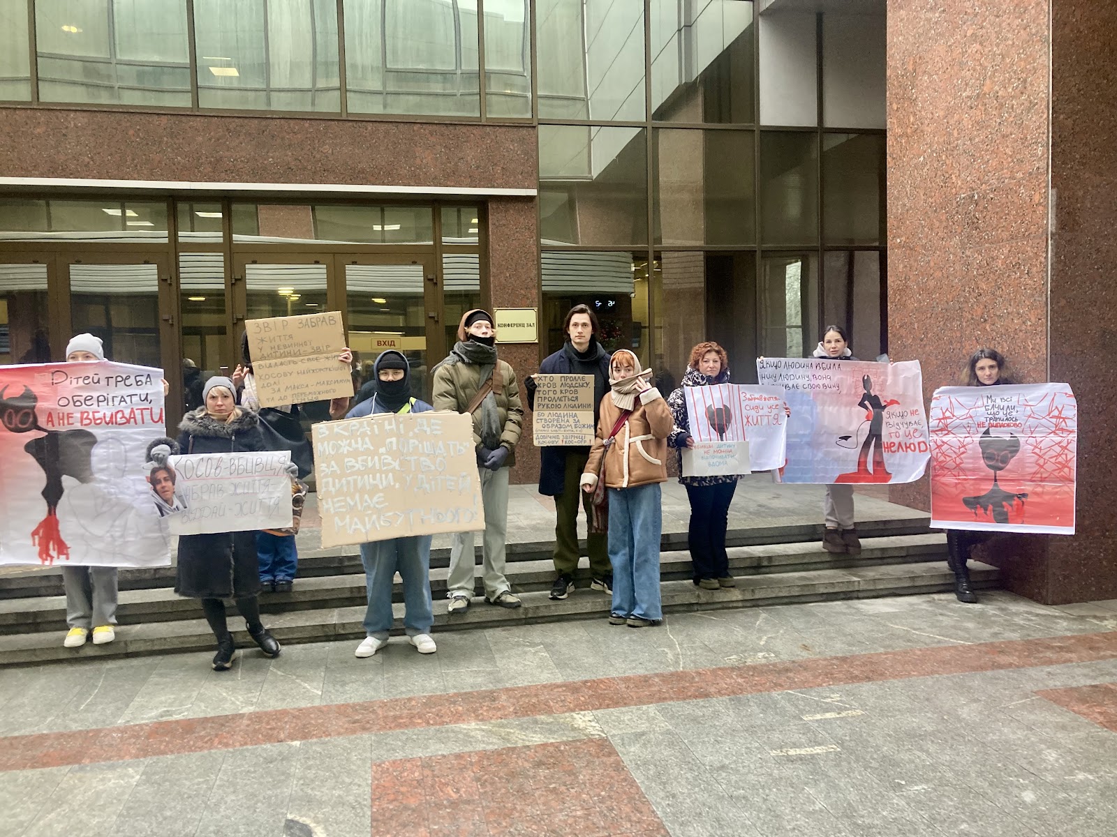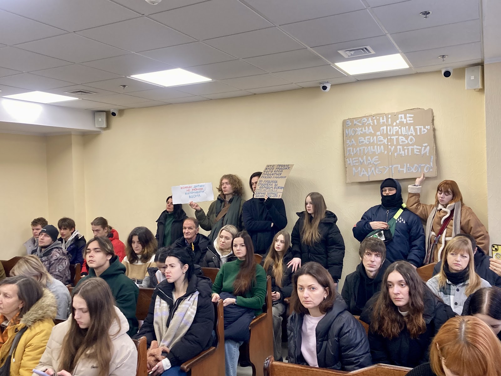 На заплановане слухання прийшли усі охочі підтримати родину загиблого підлітка. Вони тримали плакати з написами: «Вбивши дитину, не можна відпочивати вдома», «В країні, де можна «порішать» за вбивство дитини, у дітей немає майбутнього».